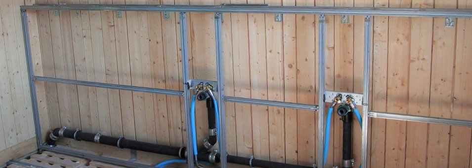Rohrleitungen und technische Einrichtungen werden in die flexiblen Trägerelemente integriert,