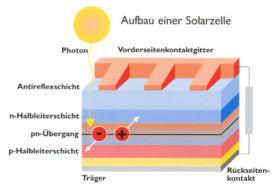 Fällt Licht auf eine Siliziumscheibe, werden Elektronen freigesetzt. Damit diese genutzt werden können, wird die Zelle