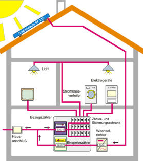 230-Volt-Wechselstrom umgewandelt und in das Stromnetz eingespeist.